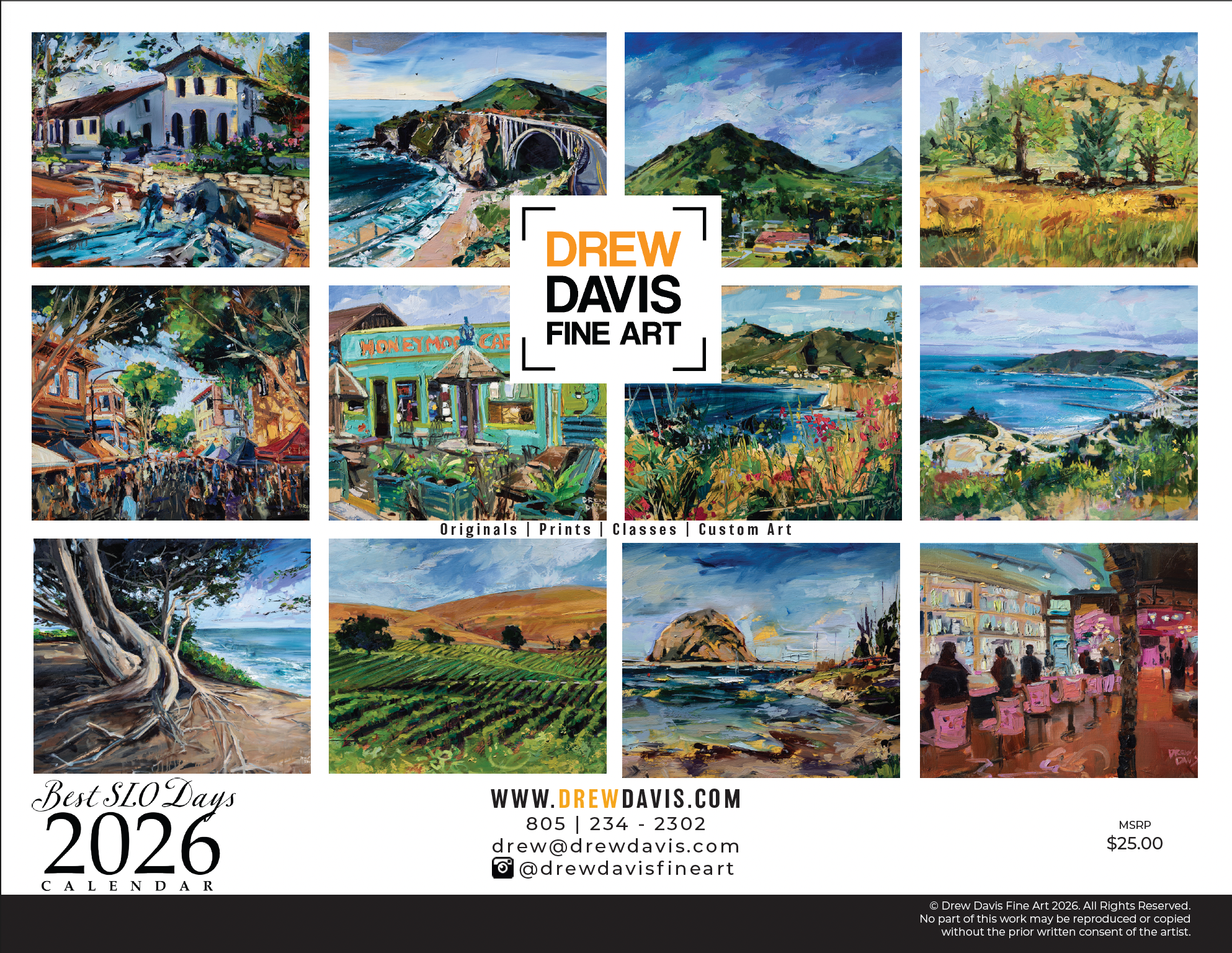 Drew's creative process involves painting intuitively, allowing the paint to speak for itself both inside and outside the studio. His Plein Air paintings, created while working outside, are particularly sought after and often sell quickly. Drew's art is available for purchase online or in person at his art studio in San Luis Obispo. Whether you're a seasoned art collector or simply looking to brighten up your living space, Drew Davis's vibrant and emotive paintings are a must-see for any lover of contemporary impressionism.